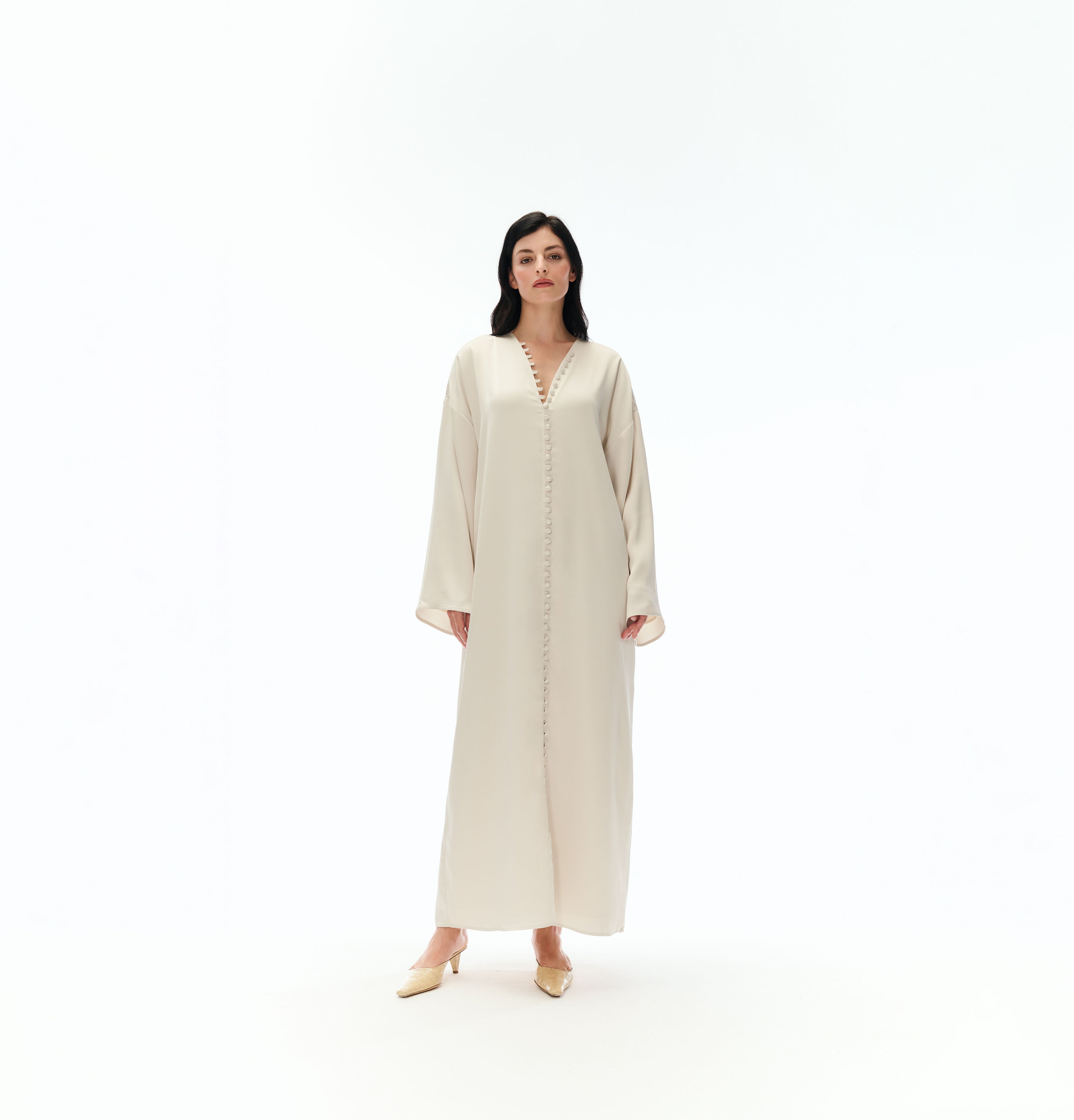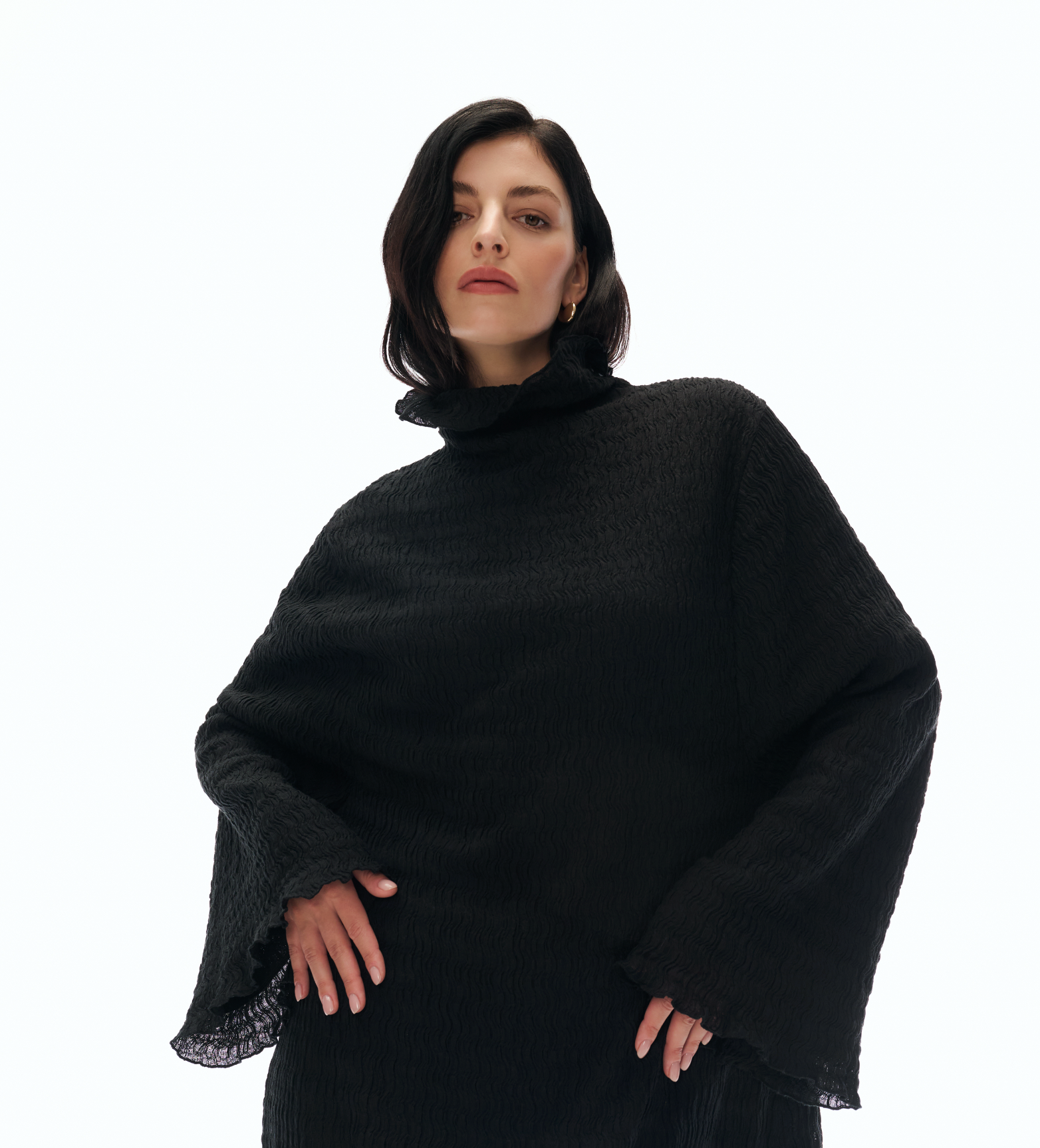 A visual metaphor for inner exploration, where each sail becomes a symbol of grace in motion, and each garment an extension of the search within. Flowing cuts meet subtle structure, creating silhouettes that feel both soft and strong. Textured fabrics bring quiet depth, while sculpted collars, wide sleeves, and graceful details reflect a modern modesty — calm, composed, and assured. In tones of ivory, noir, and pearl, each design is made to move with you — from the everyday to the exceptional. This is the beginning of a new kind of wardrobe.
